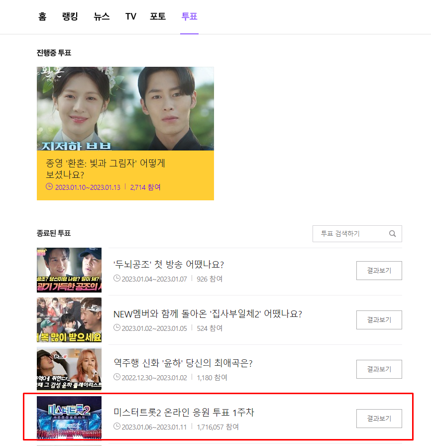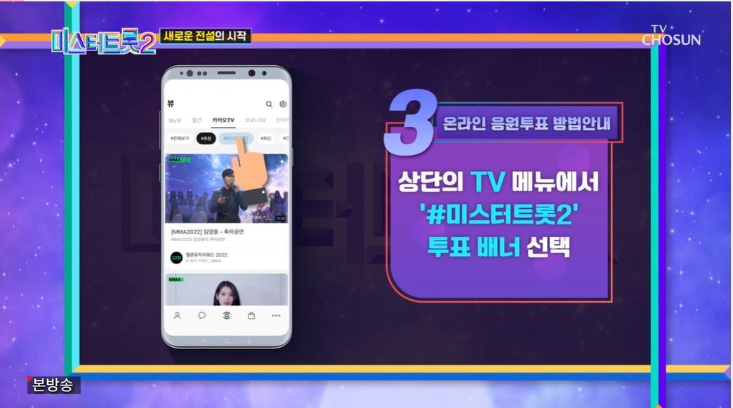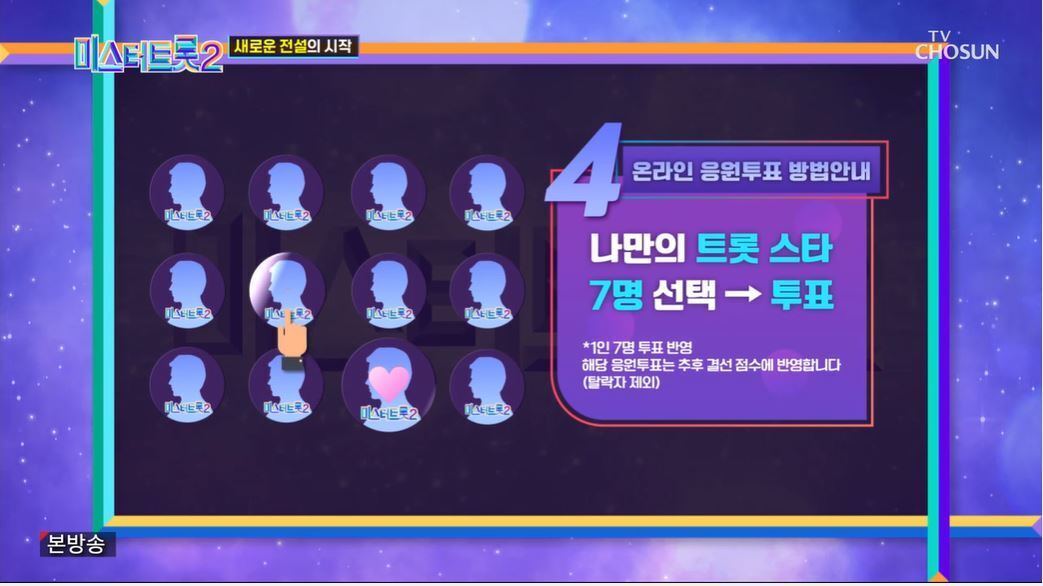 여기서 미스터트롯2 투표하기를 찾아서 선택해주세요.