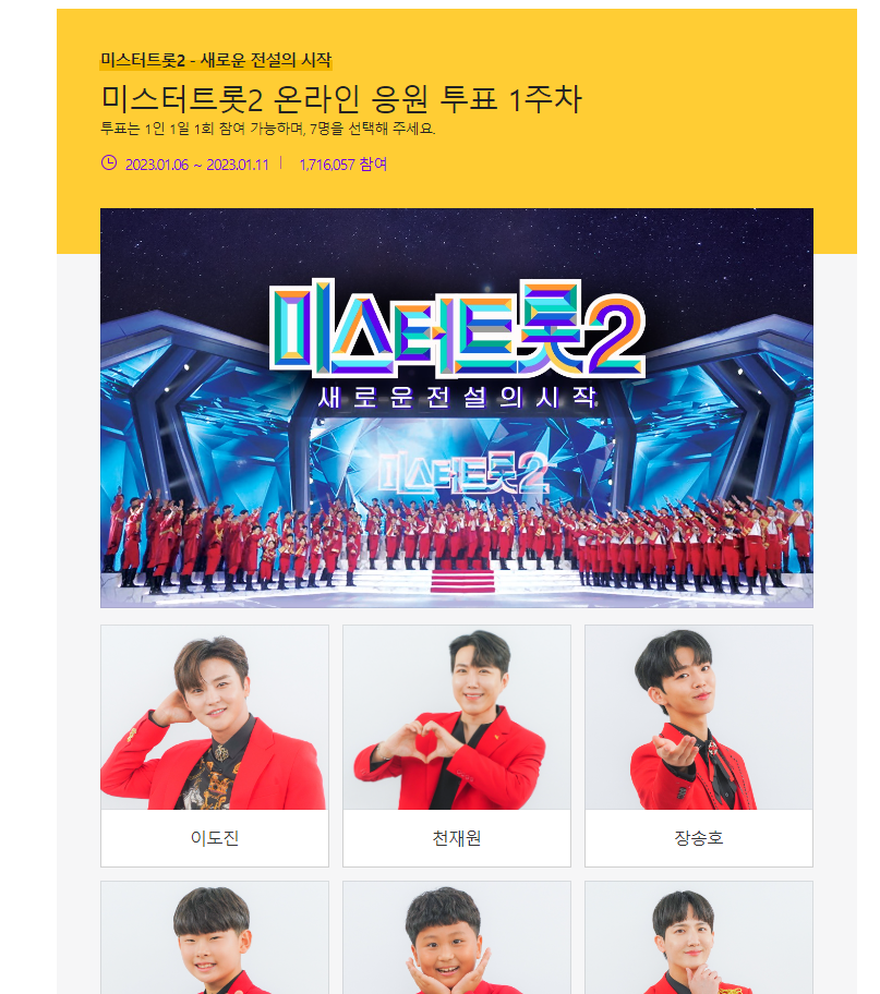 tv조선의 미스터트롯2 투표가 시작되었습니다.