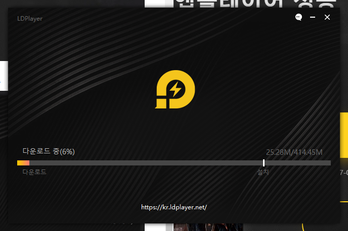 클릭하면 바로 ld플레이어 다운로드가 시작됩니다. 실행, 바로설치를 눌러주세요.
