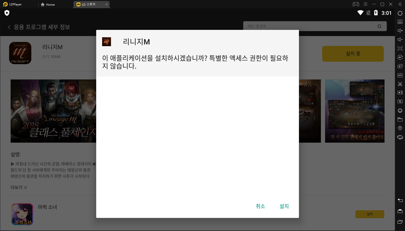 이렇게 정상적으로 ld플레이어로 리니지m을 다운로드 후 실행시켜봤습니다. 정말 간단하죠?