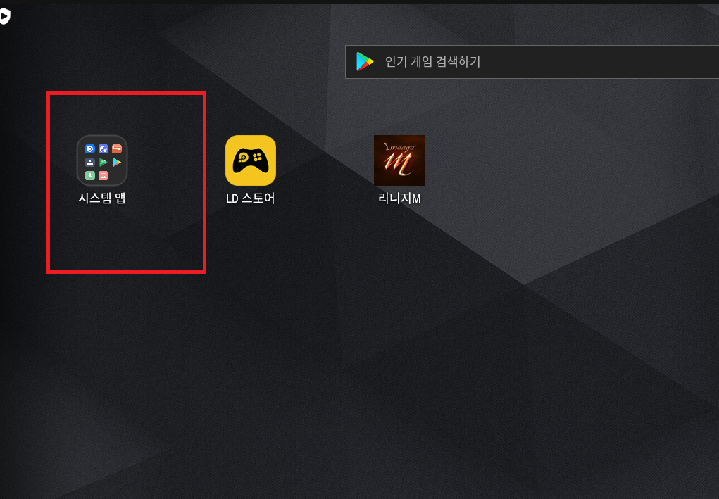 ld플레이어에서 시스템앱을 찾아서 클릭해줍니다. 그리고 설정에 들어가주세요.