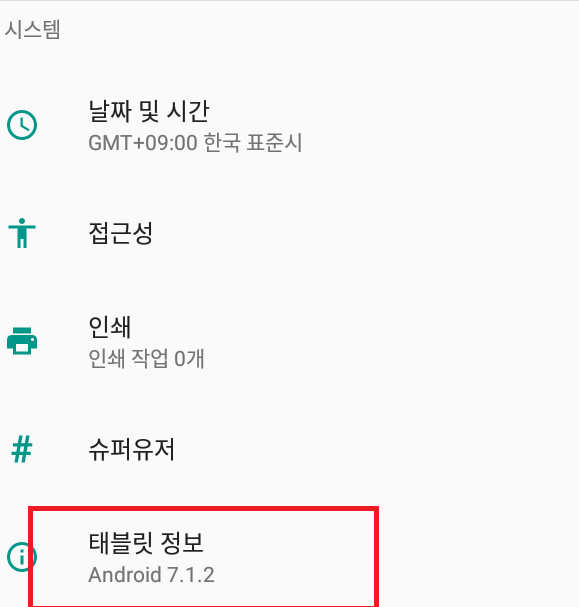 밑으로 스크롤을 내리면 맨 밑에 '태블릿 정보'가 있을겁니다. 클릭해주세요.