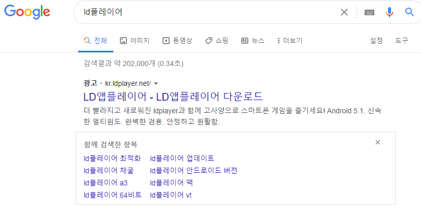 검색창에 LD플레이어라고 검색해주세요. 구글 검색창에 검색하면 바로 나옵니다.
